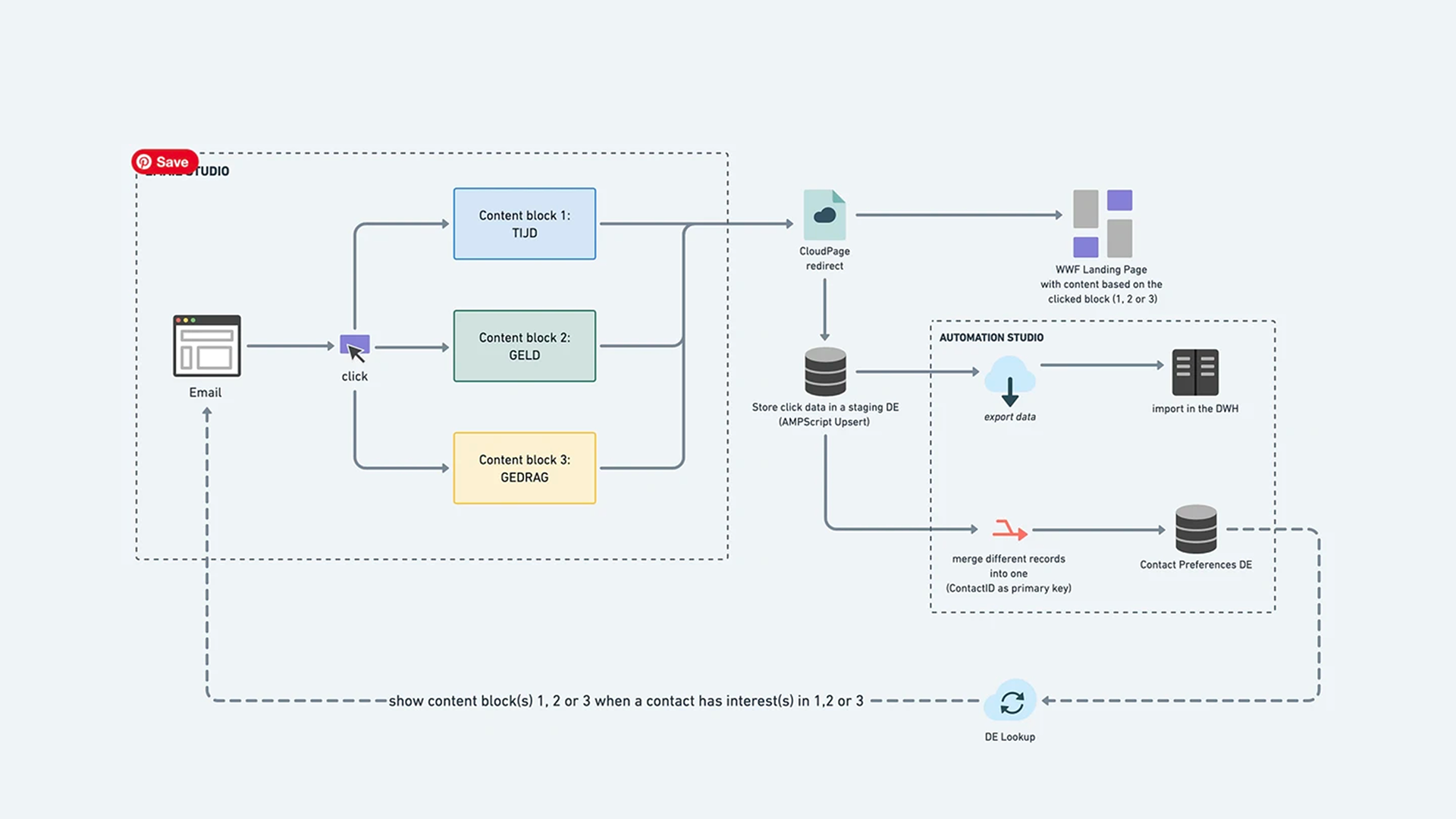 Next we added interest tracking. Each content element image, link, story or action carries tags for topics such as deforestation, species, regions or policy. As people click and read, profiles are enriched automatically. Over time this reveals what resonates and which formats perform best for different groups. WWF now uses that insight to shape content plans, write sharper subject lines and serve emails that feel more relevant to each person. The result is practical personalisation driven by behaviour, not assumptions.